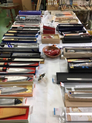 刃物市 11月8日は「いい刃の日」 毎年、いい刃の日を含めた1週間ほどの期間に刃物市を開催しています。 身近な刃物を特別価格で販売するほか、 刃物市の期間はご家庭で使われている包丁の研ぎを特価で承っています。