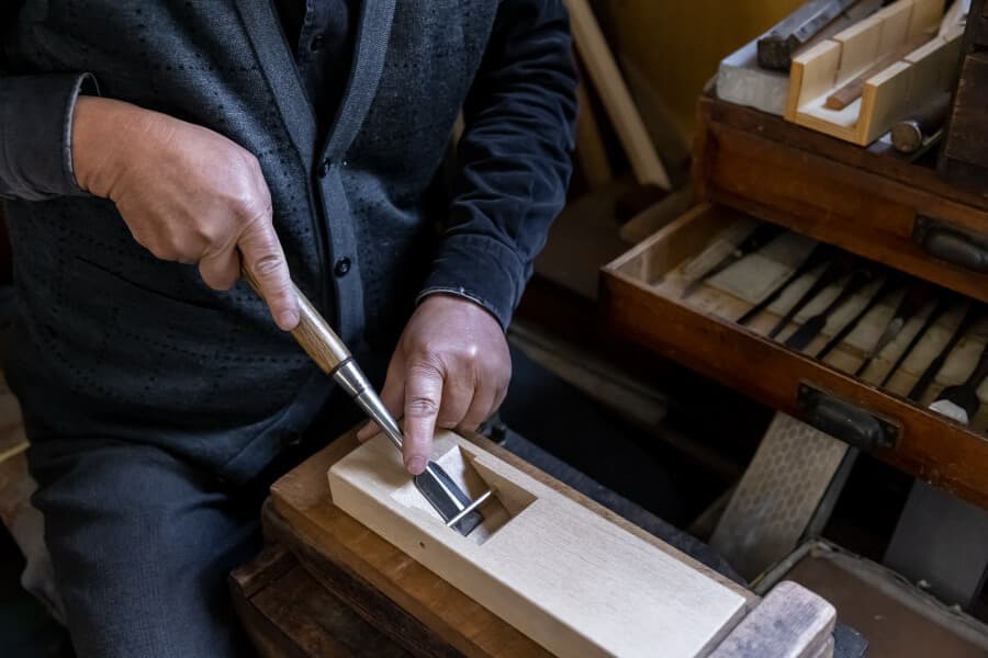 木製楽器の製作者や社寺の建築を手掛ける宮大工などが使用する特殊な刃物の試作・製作を手掛ける。また、刃物の研ぎや再生にも取り組み、カンナの台も直す。