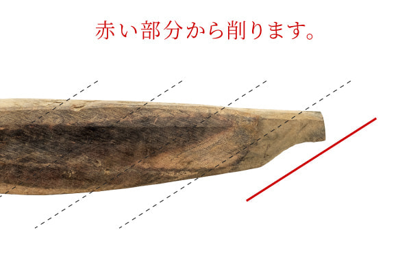5. かつお節の頭を削る方向の後ろに向けて削る。